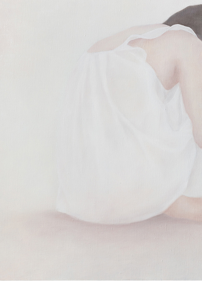 떠밀리듯 일과를 시작한다. 창밖으로 하늘을 보기보다 스마트폰으로 오늘 날씨를 확인한다. 뉴스 헤드라인을 훑는 것으로 세상의 아침을 곁에 둔다. 깨어있는 시간, 보고 듣지 않으면 불안하다. 나를 살피는 일은 뒷전이다. 내가 나에게 아침 인사를 건네 보았던가. 나와 대화하는 시간은 어쩌면 내 선택에 달렸다. 일상이 고요함을 허락해도 내 안에 다른 목소리가 들린다. 메리 올리버 Mary Oliver(1935-2019)가 <긴 호흡>에서 말했듯, 자기 안의 다른 자아가 휘파람을 불고, 문을 쾅쾅 두드리고, 사색의 연못으로 풍덩 뛰어든다. 해야 할 일, 챙겨야 할 관계, 느닷없는 걱정이 내 안의 호수에 파장을 일으킨다. 한지민은 일상의 안정감을 담아내며 마음속 불안을 건드린다. 익숙하거나 낯선 장소에서 스치기 쉬운 행동을 포착한다. 특별하지 않아서 버려졌던 몸짓이다. 깊이 관찰해야 얻을 수 있는 인물의 작은 떨림이다. 주변을 관조한다. 그 삶에 깊숙이 관여한다. 물리적인 거리 좁힘이 아니다. 관찰자 시점을 유지하며 창작자의 프레임을 동원한다. 일상의 흐름을 방해하지 않고 마음에 드는 장면을 빠르게 캡처한다. 감상자에게도 관찰자의 시선을 유지하게 한다. 감상자는 정적인 분위기에서 느릿느릿 움직이는 인물의 숨소리를 느끼고 미세한 움직임에 집중한다. 과감하게 잘린 구도는 감상자의 시야를 한정한다. 캔버스 밖을 상상하기보다 화폭 안에 멈춘 작은 동작에 시선을 둔다. 작가는 관조의 대상을 타인에 한정하지 않는다. 무의식적이고 일상적인 자신의 모습을 알아차린다. 자신에게도 거리를 둔다. 익숙한 자신에게서 멀어져 낯선 모습을 그린다. 그녀가 자신을 보는 시선에 타인을 대할 때와 다른 특별한 애정이나 연민은 묻어있지 않다. 주변과 나를 분리하는 눈을 가지지 않았다. 사적인 공간에 매일의 층을 쌓아가는 너와 나의 모습을 관찰할 뿐이다. 한낮의 꿈처럼 몽환적이지만, 현실이다. 일상을 잡은 아웃포커싱이 현재의 불분명한 상황을 말하는 것 같다. 안정된 것 같지만 안심은 안 되는 우리 삶의 이야기다. 주조색으로 회색과 분홍색을 선택한다. 에너지가 약하고 간섭받기 싫어하는 성격의 회색에 달콤함과 희망의 분홍색을 얹는다. 그 둘의 섞임은 오히려 고유색의 느낌을 명확하게 한다. 분홍색은 현실의 매력을, 회색은 무력함을 담아내며 팽팽하게 줄다리기한다. 애매한 분위기는 그렇게 만들어진다. 정확하게 꼬집을 수 없는 일상의 내적 불안을 대변한다. 한지민의 작품 구성은 영화 속 연출기법과 관련지을 수 있다. 카메라 렌즈의 초점 심도가 낮으면 벽면의 일부분을 비추는 핀조명 역할을 한다. 특정 부분에 포커싱을 두면 자연스럽게 아웃포커싱이 생긴다. 한 화면에 포커싱과 아웃포커싱이 공존하면 긴장 관계를 조성한다. 작가의 그림 속 고독감은 이 같은 관계에서 출발한다. 그리고 현실에서 아웃포커싱을 받는 대상에 집중한다. 선명한 것에 가려져 사멸되는 작은 풍경에 관심을 둔다. 선택된 대상은 윤곽선을 흐리며 화면 안에 자리 잡는다. 단순한 현실 묘사를 거부하며 정보를 축소한다. 삶에 깊게 파인 주름을 보여주지 않는다. 감춰진 현실의 이미지가 클로즈업됐지만, 자세히 볼 수 없다. 화면에 구현된 사적인 공간은 인물의 보호막이 된다. 제한된 정보 제공은 보는 이에게 내적 동요를 느끼게 한다. 뚜렷하지 않은 눈앞의 대상이 내가 아닌 것은 분명한데 마치 나를 들킨 것 같다. 잔잔한 삶에 어울리지 않는 응축된 감정은 나만의 것이 아니었다. 그림 속 남자는 바닥에 모로 누워 등의 일부분을 화면 앞으로 두었고, 어깨를 기울여 뒤돌아 앉았다. 아무렇게나 벽에 얼굴을 두었고 바닥에 대충 앉았다. 쓸쓸한 모습에 잠시 눈이 머문다. 그리고 이내 다른 것을 발견한다. 내보이지 않았고 앞으로도 내보이지 않을 감정 덩어리다. 누구나 가지고 있을 뒷모습인데 놓치고 산다. 얼굴을 드러내지 않는 작품 속 인물은 동그랗게 말린 등을 보인다. 책, 흘러내린 머리에 의해 얼굴이 보이지 않는다. 캔버스 밖으로 얼굴이 밀려나기도 한다. 얼굴 없음과 가려진 얼굴은 또 다른 얼굴이다. 과감한 구도에 의해 편집된 얼굴은 눈에 띄지 않는 사람이거나 눈에 띄고 싶지 않은 사람이다. 무심히 잘린 얼굴은 익명성을 의미한다. 예술가에게 요구되는 정체성과 상반된다. 양가감정을 건드린다. 나를 드러내고 싶지 않지만, 누군가 그런 나를 알아줬으면 한다. SNS를 통해 나를 포장하고 그 뒤에 본래의 모습을 숨길 수 있다. 본래의 모습? 과연 있기나 할까. 본래의 모습은 역설적이지만 변하기 마련이다. 고착된 무엇이 아닌 “본래”를 찾기 위한 여정은 어렵다. 하나의 온전한 개체는 모순된다. 여유 있는 웃음을 짓지만, 긴장한 손끝이 다른 신호를 준다. 한지민은 무의식적인 행동을 포착하고 전체 중 일부를 그린다. 손끝의 움직임을 놓치지 않는다. 개인의 “본래”는 관계 때문에 왜곡되곤 한다. 작가가 한 화면에 하나의 대상만 허락하는 이유가 아닐까. 주변을 밀어버린 소파가 덩그러니 놓였다. 하모니를 거부하는 것처럼. 속삭이듯 묻는다. “내가 주인공인 거지?” 목소리가 떨린다. 관찰의 