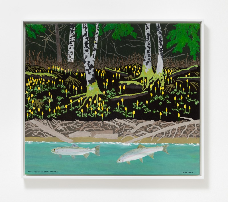 1년 중 150일 이상 열렬히 플라이 낚시를 하는 작가는 지역 수역에 대해 잘 알고 있으며, <그랜트 호수 속 빅 브라운>에서 그녀가 즐겨 찾는 낚시터와 개인적인 관계가 시각화된다. 나아가, 작품 아래의 새겨진 글을 보면 물고기에 대한 작가의 친밀한 지식도 찾아볼 수 있다. 예를 들어, <걸 호수의 브루키 터>에서 나타나는 민물송어 (Brook Trout)는 호머 프렌치는 정겹게 “브루키 (brookie)”라고 부른다. 작가에 따르면, 걸 호수는 얕아 여름에 온도가 많이 올라가지만 “민물 송어는 찬물을 선호한다. 호수 바닥에서 차가운 샘이 분출되기 때문에 브루키들은 거기에 몰려있다.” 한편 <블로우아웃>은 멕시코만에서 발생하는 석유 시추 시설의 화재와 민어, 바다 송어, 풀잉어들이 위험의 근원에서 멀어지려고 헛되이 헤엄치고 있는 모습도 함께 담았다. 작가에게 물고기는 추상적 상징이 아닌 주요 인물이다. 수시로 오염되는 멕시코만에서 서식하는 세 종류의 물고기들에게 석유 시추 시설 화재의 즉각적 영향을 강조하면서, 인간의 태만으로 인한 수중 생물이 겪고 있는 고통의 기후 정의를 시사한다.