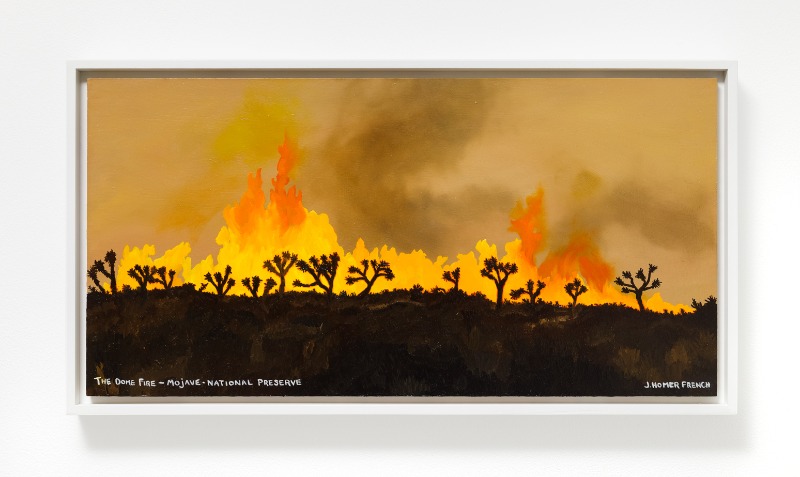 기후 변화로 인한 장기간 가뭄 상태와 온난화의 결과인 산불이 캘리포니아주 남부를 계속 불태울 때, 작가는 지속해 산불 사태를 그리겠다는 확고한 헌신을 표명했다. 2020년 8월, 약 5천 3백만여 평 이상을 없앤 ‘돔 화재’는 캘리포니아 사막에 위치한 호머 프렌치의 자택에서 몇 킬로까지 다가왔으며 이는 동일한 제목을 가진 작품에 기록되어 있다. 화재로 수천만 그루의 소각된 나무의 모습은 <번아웃> 두폭화와 같이 야위고 검게 타버린 나무들과 흡사한 해골 묘지로 변했다.