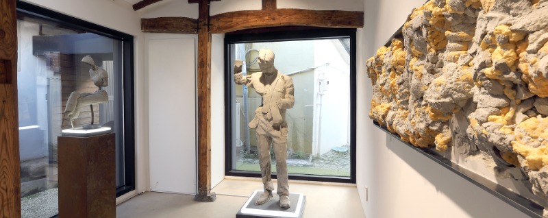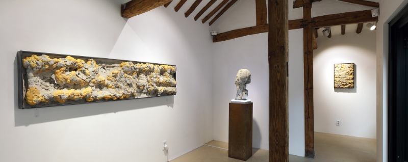 Q. 전시 제목을 《플렉서블》으로 정했다. 새로운 국면을 맞이하고 동력이 상실된 지금, ‘플렉서블(유연한)’은 여러 방면으로 우리에게 강요되는 형용사 중 하나일 것이다. 다수의 매체들이 유연한 근무, 유연한 투자, 유연한 사고방식 등 살아남기 위해선 반드시 유연해야만 한다고 연일 떠들썩하다. 하지만 무기력함이 만연한, 지금 시대의 유연함은 불편하기만 하다. 누구에게나 공평한 유연함도 아닐뿐더러 유연하기 위해 소비하고 소모해야 할 것들이 너무나 많기 때문이다. 그 어느 때보다 파괴하고, 다시 시멘트로 구축하여 경제를 유연하게 회전시키는 현대의 유연함을 다양한 시각으로 보고자 한다. Q. 근작의 소재들은 어디에서 왔나. 인물 조각상은 인물을 혹은 역사적인 사건의 의미를 기념하기 위한 기념비로서 제작되고 있다. 인물은 이미지를 통해 실재하는 것으로 사유와 기억을 공유하는 형식을 띤다. 동시대의 사건의 기억을 소유하기 위해 미디어를 통해 무작위적으로 송출되는 정보들 속에서, 본인 스스로가 불편하게 느끼는 인물 혹은 인물들의 특정 행동을 통해 당대를 기록하려는 근거로 선정하고 있다. 〈데몰리션〉의 경우, 과거 한때 유행하였던 외계인 콘셉트 ‘데몰리션 노래방’의 떨어져 나간 시멘트 외벽 간판을 모티브로 삼았다. 요즘 흔히 과거에 유행했던 것을 다시 꺼내어 그 향수를 느끼고 옛날로 돌아 간 듯한 감성적인 카페나 음식점을 선호하는 뉴트로라는 신조어가 생겨났다. 종종 과거가 미화되는 것은 사실이나, 작금에 불확실한 미래의 모습은 경제적인 초성장을 이룩할 시절 공동체가 함께 미래를 꿈꾸던 희망적인 사회 분위기와는 많이 달라진 것이 사실이다. 따라서 당시의 열광했던 이상은 모두 낡아 떨어진 시멘트 한 줌이 되었고, 이를 표현방식으로 현대인이 목도하는 욕망을 표현해보고자 하였다. Q. 주로 건축에 사용하는 재료를 작품에 사용하는 점이 흥미롭다. 현재 도시의 기본적인 건축 구조를 만드는 재료인 시멘트는 견고한 재료이긴 하지만 매끈하게 성형하기가 쉽지 않고, 시멘트는 시간이 지나면서 금이 가거나 부분이 조각나거나 하기 때문에 대부분은 타일이나 페인트 혹은 다른 부재들로 감춰져 버리기 마련이다. 이러한 재료의 속성에 착안하여, 본인 작업의 주제와 잘 맞는 성향 다시 말해 우리가 생각하는 것보다 강한 외면에 약한 속성들도 자리 잡고 있다는 이면의 의미를 효과적으로 표현할 수 있다고 판단했다. 따라서 본인 작업들은 모두 머리와 팔, 얼굴들이 손상되고 곳곳의 균열과 철근이 노출된 형태를 보이고 있다. 이는 현 사회상태가 임계치의 근방에서 겨우 지탱되고 있음을 암시한다. 경이로운 성장을 위해 토건사회를 지향했지만, 현재까지도 탈출을 위한 방법으로 토건을 대책으로 삼고 있다. 파괴를 통해 생산된 부산물(시멘트, 철근)은 어렵지 않게 곳곳에서 마주할 수 있으며, 부서진 시멘트 덩어리에 박힌 철근의 이미지는 오히려 시멘트를 더욱 시멘트처럼 보이게 한다. 유지보수를 한다면 더 오래 사용할 수도 있지만, 그 비용이 신축 이상으로 발생하고 안정성에도 심각한 결함이 발생하기 때문에 적당히 이용하고 부수는 것이 이득이며, 파괴와 재조립의 무감각한 현상의 반복에서 느끼는 무기력함을 작품에 적용하고자 하였다. (출처= 학고재갤러리)