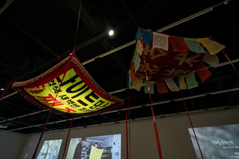 - 전시관람 온라인 사전예약 : https://booking.naver.com/booking/12/bizes/544990 - 사전신청은 선착순 예약제로 운영되며, 사전신청 가능인원은 1명당 2명까지 신청가능합니다. - 사전신청 후 방문이 어려울시 방문일 하루 전까지 사전취소 부탁드립니다. - 온라인 사전예약 접수를 우선으로 하며, 온라인 사전예약 미달 및 취소 시 해당 인원수에 한정하여 현장 접수가 가능합니다. 2021년 아르코미술관 기획초대전은 작가 정재철(1959 – 2020)의 작고 1주기전으로 마련한다. 《정재철: 사랑과 평화》전은 장소를 이동하며 수행했던 참여 형식의 프로젝트를 살펴보며, 현장작업의 결과물로 ‘기록과 수집’된 작업을 재구성하여 작가가 지향했던 예술적 실천을 따라가 본다. 정재철은 1988년 중앙미술대전에서 대상을 수상한 이후 조각매체를 다루는 작가로 주목받기 시작하였다. 이후 1995년 당시 출강하던 대학교에서의 뒤셀도르프 쿤스트 아카데미 교류 워크숍의 계기를 통해 해외 레지던시에 참여했으며, 이는 작가의 미술언어를 성찰하는 결정적 시기였다. 작가는 한국 미술계가 겪은 세계화라는 변화 동력과 함께 2000년대부터 여행과 이동을 통한 개념적이고 수행중심의 미술언어로의 전환을 모색했다. 이번 전시는 2000년 이후를 작업에 대한 태도와 방법론적인 변화의 전환점으로 보고, 현장 작업 〈실크로드 프로젝트〉(2004 – 2011), 〈블루오션 프로젝트〉(2013 – 2020)를 통해 작가 정재철의 태도와 사유의 변천, 사회적인 문제를 향한 작가의 성찰을 보여준다. 제1전시실은 사진, 영상, 루트맵, 여행일지 등 기록매체를 중심으로 〈실크로드 프로젝트〉(2004 – 2011)를 재맥락화한다. 정재철에게 여행이라는 이동과 길 떠남은 곧 삶의 방식과 예술적 실천이었다. 근대 이전에 유라시아를 관통하는 교역 경로였던 실크로드를 따라 실크로드 프로젝트를 실행했던 정재철은 국가의 경계를 넘으며, 길 위에서 폐현수막을 나누어주고 뜨거운 태양 아래 그늘을 만들었다. 그리고 우연한 만남, 교류, 사건과 상황을 만들고 기록하였다. 이렇게 걷기라는 반복된 순간들로 이루어진 경로들은 루트맵이라는 지도형식으로 기록되었으며, 이는 작가가 장소를 이동하고 길을 만드는 과정을 담는 수행의 경로였다. 지도 바깥에 존재하는 장소와 그 장소에 존재하는 사람들과 형성했던 교류와 네트워크 안에서 작가는 보다 유연하게 지역의 고유성과 문화를 수용하는 혼성적 형태를 지향했다. 이동함에 따라 장소의 상실이 발생하고 그렇기에 현장성을 담는 기록과 수집은 작가에게 있어 필연적인 방법이었다. 현장의 기록과 수집은 프로젝트가 거듭할수록 변주되어 사실의 기록과 편집된 기록 사이에 존재한다. 정재철의 기록과 수집물에 내재한 이러한 간극은 장소의 직접성의 잔여, 파편, 혹은 흔적에 가깝다. 따라서 이번 전시에서 재구성되는 실크로드 현장 프로젝트는 기록물에 남겨진 부재의 감각을 연결시킨다. 이동과 여행이 제한된 오늘날, 〈실크로드 프로젝트〉에 담긴 현장성, 이동의 장면은 현재와 과거에 먼 시간의 거리를 기입하며 부재의 정서를 떠오르게 한다. 〈실크로드 프로젝트〉에서 드러나는 이동, 이주의 움직임은 작가노트에 하나씩 지워간 달력, 과거로부터 온 편지와 우편엽서, 그리고 정재철의 기록의 파편을 이어 붙이는 백종관의 영상으로 이어진다. 제2전시실은 ‘사물의 물질성에서 발굴한 순환적 가치와 생기’라는 작가의 태도를 보여준다. 정재철이 사물을 바라보는 시선에서는 조각에 대한 조형적 관심과 동시에 사물 자체에 내재한 힘과 생기에 대한 인식, 나아가 생태에 대한 사유를 엿볼 수 있다. 해류를 통한 쓰레기들의 이주를 드러내는 〈블루오션 프로젝트〉(2013 – 2020)는 인류의 공유지인 해양의 오염을 물질적 증거물로 포착해내고, 인류에게 간섭하고 사건을 촉진시키는 비인간 사물들의 연결망을 보여준다. 작가는 불에 탄 플라스틱과 바위 표면, 해류를 통해 인접 국가에서 흘러온 쓰레기를 부유사물로 명명하고 수집하였다. 이와 같은 행위는 세계에 활동하고 간섭하는 행위자로 참여하는 생태계 네트워크, 그리고 경계를 넘어 연결된 공유지에 대한 인식과 같다. 〈실크로드 프로젝트〉에서 이동하는 주체가 만남과 교류를 수행하며 주체의 바깥을 향했다면, 〈블루오션 프로젝트〉의 비인간 사물의 순환과 상생하는 힘에 대한 존중은 공유지라는 경계 너머로 작동하는 공동선을 향해있다. 전시의 제목인 ‘사랑과 평화’는 〈실크로드 프로젝트〉의 마지막 여행지였던 영국 런던의 팔리아먼트 광장(Parliament Square) 반전 시위캠프의 천막 위에 적은 문구다. 작가의 작업에서 빈번하게 발견되는 사랑, 그리고 평화는 사회 참여적 프로젝트를 통해 지향했던 공동의 지평을 드러낸다. 《정재철: 사랑과 평화》는 수행하는 몸으로 경계 이동을 실천했던 작가의 태도와 공유지에 대한 문제의식에 기반하여 순환하는 사물에 드러나는 그의 생태에 대한 사유를 좇는다. 인류의 공유지인 행성의 위기감, 그리고 전지구화의 다른 국면이 펼쳐지는 현재는 적대와 혐오의 정서와 보수화되는 정치와 같은 새로