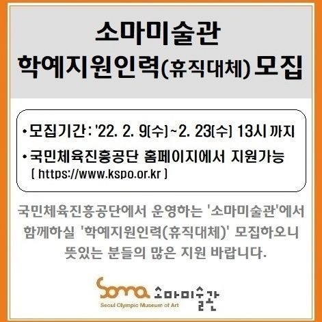 국민체육진흥공단 소마미술관 학예지원(일용계약직) 채용 공고