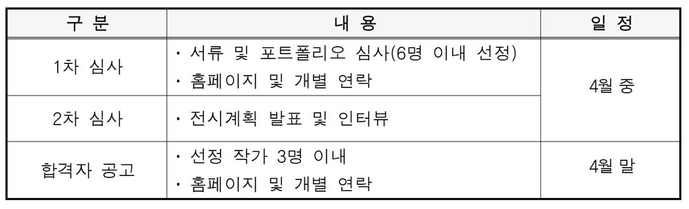 ❍ 선정 작가는 워크숍 및 관람객과의 만남 등 부대 프로그램에 반드시 참여