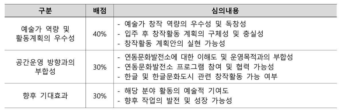 ○ 입주시설: 연동문화발전소(세종특별자치시 연동면 내송길 20)