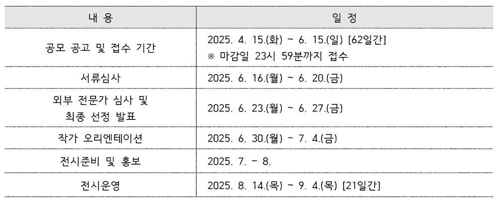 □ 공모기간 : 2025. 4. 15.(화) ~ 6. 15.(일) [62일간]