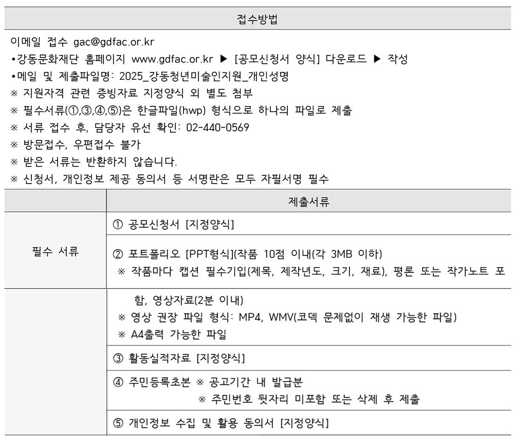 □ 공 모 명 : 2025 강동아트센터 「강동 청년미술인 지원 프로젝트 공모」