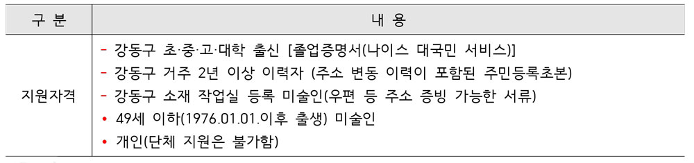 □ 지원자격 : 아래 강동구 내 활동 자격 1가지 이상 충족