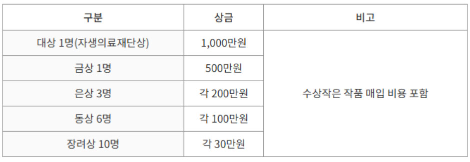 ※ 출품작 수와 심사결과에 따라 수상규모와 시상내역 일부 변동 가능