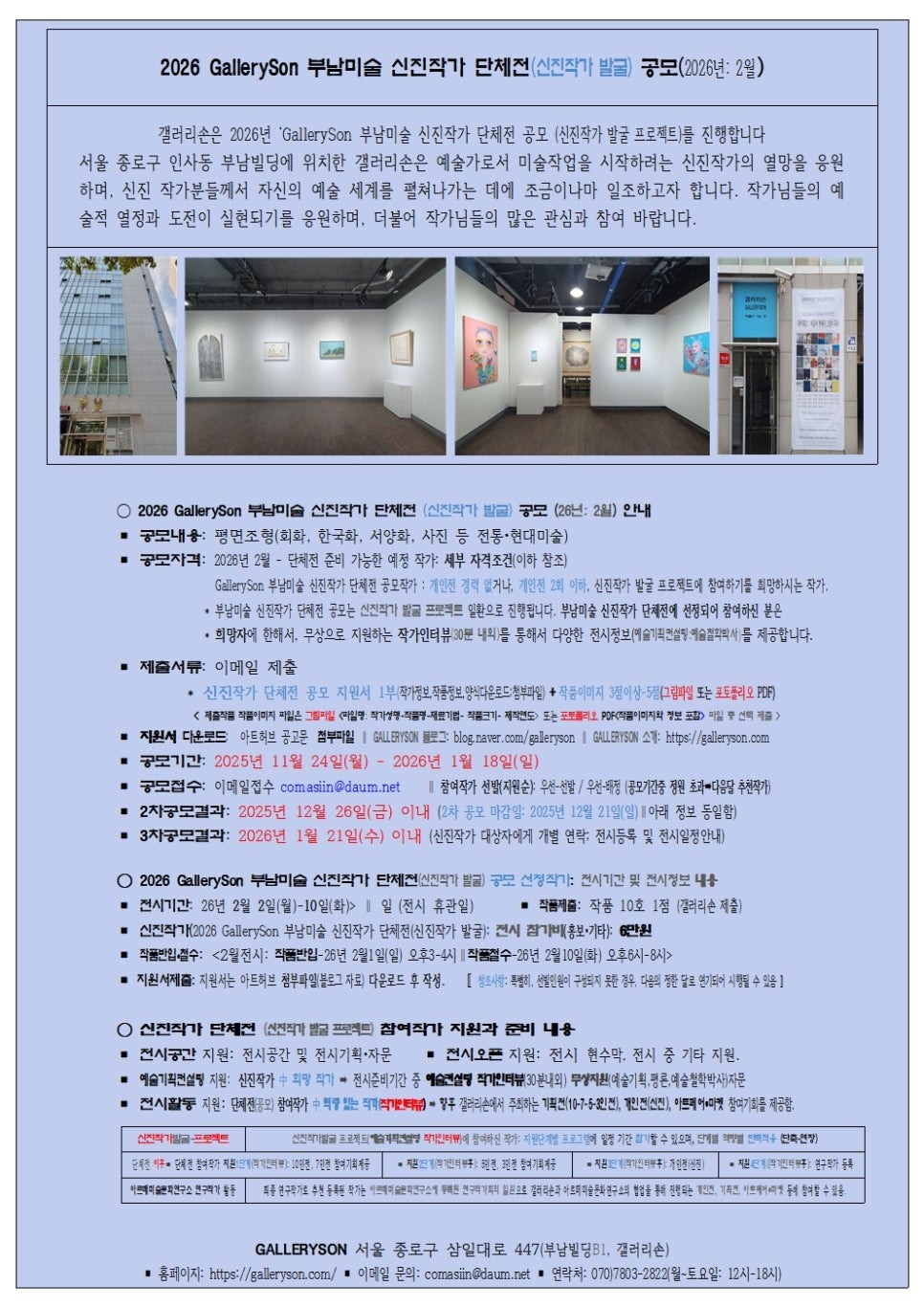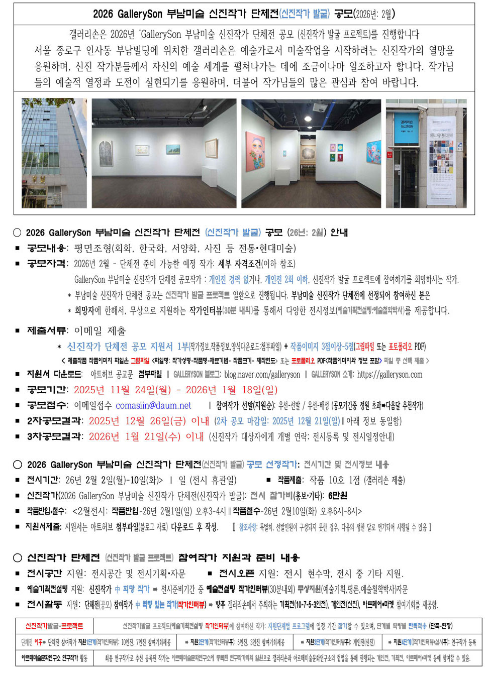 2026 GallerySon 부남미술 신진작가(발굴) 단체전 공모_26년:2월