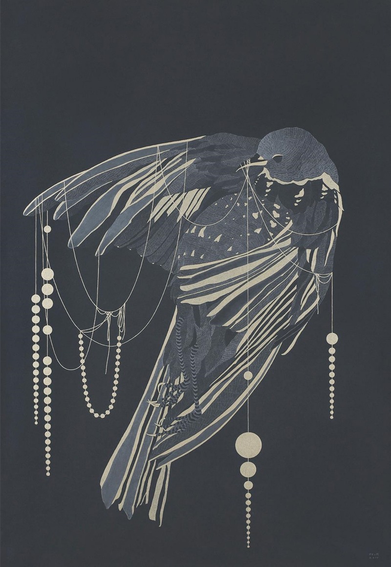 2015 Pencil and gold colour pen on black paper 79.5 x 54 cm